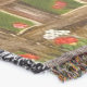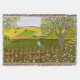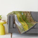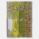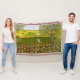 En filt med en vacker bild av ett naturscen: En fågel som sitter på ett väderbitet staket, vilda blommor som växer runt staketet, en bonde på en traktor, som brukar sin mark, träd fäller löv, och åkermark i olika färger. Originalkonst av W.B.