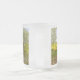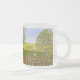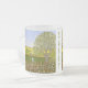 En mugg med en vacker bild av en naturscen: En fågel som sitter på ett väderbitet staket, vilda blommor som växer runt staketet, en bonde på en traktor, som brukar sin mark, träd med löv, och åkermark med olika färger. Bakgrunden och bilden kan anpassas. Text kan läggas till. Originalkonst av W.B.