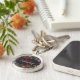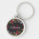 Vacker utsmyckad personlig mönster med mörka blomm rund silverfärgad nyckelring