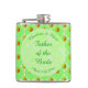Denna fantastiska falkflaska är till Brudens far. Designen har ett mönster av vackra, blekt rosa äppelblomsblommor. De finns i 2 olika rosa nyanser och alla har en gul mitt. De är perfekta för en vårbröllop och är utspridda bland äpplen. Varje äpple är grönt med en röd rodnad på ena sidan och en liten brun stjälk.