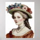 Gå tillbaka i tid med den här coolan poster. Ett vackert dam från för länge sedan i en finare-klänning. Hon har en hatt med söt blommor i rosa, blått och brunt. Hennes hår är helt hjärnskuret och hon har glansig vintage stil-smycken. Bakgrunden är toppen och vit, skapar henne framträda ännu tydligare.