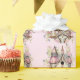 Sött viktorianskt fågelhus med torn, rosa och blå blommor och slingrande vinrankor. Vacker feminint rosa och vitt slott fågelhus.