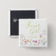 Till blomsterflickan i ditt bröllopsparti har denna vackra knapp en akvarell vildblomme trädgård med "blomsterflicka" i en elegant handskriven grön typografi. Personifiera med ert bröllopsdatum.