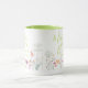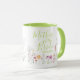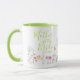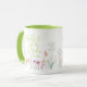 En speciell gåva till mamman till bruden, mugg med en akvarell vildblomma trädgård med "mamma till bruden" i en elegant handskriven typografi i en mjuk grön färg som matchar insidan och handtaget. Personifiera med ert bröllopsdatum.