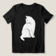 Tee i en silhuett av en vacker, långdragen, sitta-katt i vitt