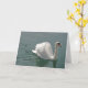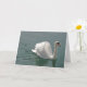 En snygg, vit, stolt svan som simmar i grått vatten och reflekterar. Greetingkortet kan anpassas med dina födelsedags- eller morsdagshälsningar.