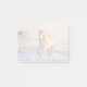 Fästande anteckningar med ett foto av en underbar vit häst. Körs genom ett snö täckt fält. Majestisk och vacker.