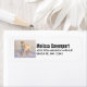 Adressetiketter med ett foto av en underbar vit häst. Körs genom ett snö täckt fält. Majestisk och vacker.