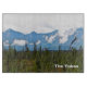 En typisk sommarplats i Yukon och andra områden i norr. Platt, marshy terräng dominerad av svart grus. Moln klamrar sig fast vid ett avlägset bergsområde. Text som läser "Yukon" visas också. Ett vackert, bräckligt land.