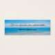 Ett affärskort för smala för bröllop webbplats eller annan text. Designad med ett landskapsfoto av en tropisk strand. Azure vatten och blå himmel med försiktigt vinkara som överlappar vid kusten med moln i avstånd.