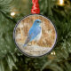 Vackerlig bergsblåsefågel på logg julgransprydnad metall