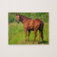 Det här vackra hästpusslet är ett häpnadsväckande foto av en bedövande kastanjehäst på en grönt vår-betesmark. Fotografi skapat av prisbelönt fotograf Maria Jeffs.