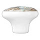 Kökskåp av keramiskt glas med en bild av en vacker strand. Slingfisk, Seashells och pärlor av härkomst tillsammans med biet av drivträ. Underbar för sommarhemmet, semesterhuset, strandtemakkök. TRYCKT BILD INGEN FAKTISK MOR AV PEARL, STAINERAT GLAS, GEMS ELLER GULD METALL