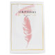 Vackert och snyggt guldfärgat ram med rosa luddpenna teckning och rosa färgslagar med grattis på födelsedagen önskemål. Luxuriös och enkel utformning av födelsedagskonst. Anpassa genom att ändra texten eller anpassa den ytterligare för att lägga till din egen beröring.