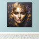En porträtt av en vacker kvinna gav liv med realistiska effekter. Bilden är präglad av texturerat svart granit och adorberad med abstrakt golden linjer, mörk lila och guldinslag omger hennes ansikte i ett konstnärligt omfång som skapar en fängslande och unik sammansättning.