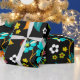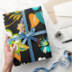 Vackert Aqua & Black Abstrakt Blommönster Presentpapper
