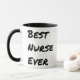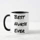 Ett vackert kaffe mugg, den här posten visningar "Best Nurse Aldrig" på båda sidor om mugg, skriven med ett stort fet bakslag. Med svart insida och handtag, beställ din idag!