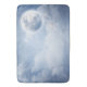 Ett badmatt med en magisk fantasi himlar med flytande blå moln och ett stort vackert måne. Två vita svanar flyger av tillsammans.
