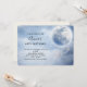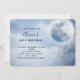Födelsedagsfest inbjudan med ett scenariskt moody blå himmel med moln och ett stort vackert måne. Två vita svanar flyger av tillsammans. Magisk fantasi-design.