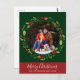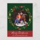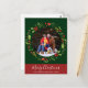 Den här vackra grönten och det röda vykortet för helgdag har en söt botanisk krans av löv och blommor för ett festligt utseende. Den här personligen innehåller julvykortet en egen anpassningsbar under anpassningsbarna, ett foto för sällskapsdjur eller barn i cirkelmallen. Anpassa med ett foto av hund eller familjen och en egen text i vitt.