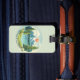 En vintage-stil, souvenir-bild med vacker brittisk Columbia. I bilden hittar du berg, skog, träd, färja, Lejona bron i Grind, vatten och provinsblomman: Pacific Dogwood. En underbar återförebild av Kanadas BC. Det här bagagetaggen är fullt anpassade och redo att vara personlig.