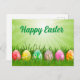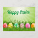 Den här vykortsdesignen har ett dynamiskt och öga-infångande urval av Påskägg i en rad olika pastelltyper i färg. Mot en lush grönt bakgrund dyker äggen upp med nyanser av baby blue, mjuk rosa och solig gult. Varje ägg är dekorerat med mönster, inklusive rand, och med intrikata blommigtar, vilket ökar kortets synlighet. Äggen placeras på ett lekfullt och vismiskt sätt, vilket ger en känsla av glädje och förundran. Gröntens bakgrund är ett komplement till äggens färg i perfekten, vilket ger en känsla av färskhet och ny tillväxt. Detta vykort kommer säkert att glädja alla som får det och är ett perfekt sätt att skicka Påsk hälsning eller helt enkelt sprida lite glädje och färg till någon.