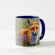 Det här vackra mugg har en vacker räv i en blåklocksskugga.