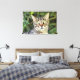 Vackert kanvastryck med ett ursprungligt närfoto av ett vackert grått tabby katt med stor grönt-gult-öga.