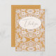 Vacker djupgul bakgrund med rustik falsk spets. ”Tack” i fin typografi. Perfekt för alla tillfällen.