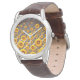 Vackert gula blommor på grått, brunt rand armbandsur
