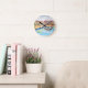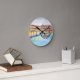 Vackra porihandsmålade tryck på en rund väggklocka.