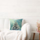 Vackert Julgran med Snö och Guld Ljus Kudde