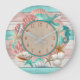 Vackert, korall, Seashell och Beach Design Stor Klocka