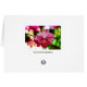 Vackert kort för orkidéhälsning med anpassningsbarnas text, datum, namn och tillfälle. Från Utopi Park i Israel: blommor av olika former och färg, rött, vitt, orange, grönt, gult, blått, lila och så vidare.