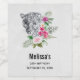 Flaska-etiketter med en vacker illustration med grått, svartvit leopard porträtt. Det här vackra djuret omges av en tropisk blombukett. Elegant, exotisk och underbar.