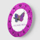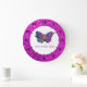 Vackert Lila och Guld Butterfly Stor Klocka