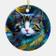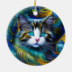 Vackert Mystikkatt i blåsor och golder Julgransprydnad Keramik
