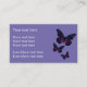 Affärskortmallen Butterfly-naturtema designad med tre vackra färgader i bakgrunden och enkel layout som du kan anpassa dig till. Skapat för konst- och hantverksverksamhet, naturtema, kontaktkort för mammor eller barnbarnbarnvaktstjänster.