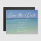 Den här vackra stranden sparar datumet för magnetkortet med ett serienfoto av havshorisonten för ett destinationsbröllop på kusten under sommaren. Inbjudan dina gäster till ett vackert tropiskt bröllop på en eftermiddag i havet på din favoritö med den här söten fotografi. Slutförd med chicens vita skript för ett uppskalat kustutseende.
