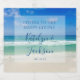 Den här vackra vin-symbolen på strandbröllop är ett vackert foto av vinkara havet för ett målbröllop. Fotografi av söt strand parad med elegant vit och blå typografi skapar en chic, modern sökning efter en tropisk öhändelse. Gott om personlig för markuttaget.