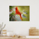 Poster med fotot på en vacker röd kardinal sitta i grenar i träd.