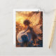 Den här fantastiska bilden skildrar en vacker, eterisk sol-älva med glödande vingar, som försiktigt rör vid en stor dandelion. Det varma, gyllene ljuset skapar en magisk och säker atmosfär.