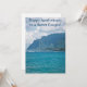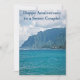 Ett vackert hawaiianskt strandlandskap för att gratulera ett speciellt par på årsdagen. Du kan enkelt ändra formuleringen om du önskar. Den snygga blå texten säger nu "Lycka till på årsdagen för ett underbart par" på framsidan och "Vi önskar er glädje under alla kommande år" på insidan.