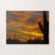Vackra Sunset Desert Landscape Puzzle. Vackra ökenscenen i Tucson, Arizona fylld med saguaro cactus. Timmar av roligt som sätter ihop detta pussel av sceniska berg, himlar och ett vackert landskapsfoto av solnedgången.