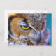 Ett vackert vykort för naturen med en målning av ett gloriskt tittar Underbart Uggla som verkar stirra in i beinnehavarnas själ med hans mystiska gyllene öga.