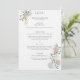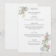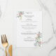 Denna exklusiva bröllopsmeny är prydd med ett elegant blomster motiv med ömtåliga rosor och hortensior insvepta i frodiga gröna blad. Den klassiska stilen och serif-typsnittet stärker den övergripande sofistikeringen.