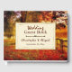 Fall Watercolor Christian Bröllop Guest Bok visar ett foto av rött löv på vackert träd på hösten, där man bortser från ett naturområde som gränsar till ett gammalt trästängsel i väg. Baksidan innehåller ett inspirerande citat: "GOD har lett två liv till att ta ett väg."
