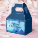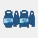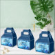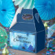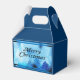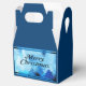 Den vackra julklappen har vit snöflingor som faller från ett magiskt blå himmel. Underbar gåva till lycklig tillfälle.