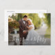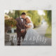 helgdag-kort för bröllop med vitt skript och ett tack till dina gäster. Bilden par kan vara personlig.