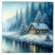 Vackert Winter River Landskap Kakelplatta